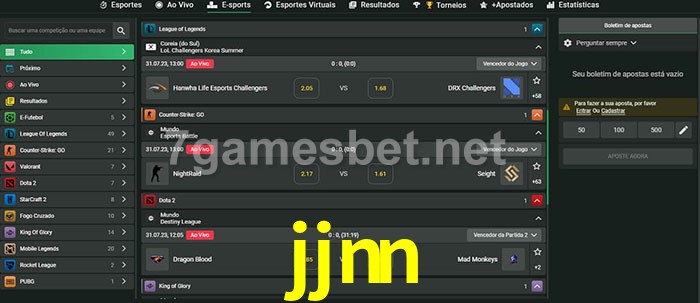 O jjnn oferece uma grande seleção de opções de apostas em e-sports com probabilidades competitivas